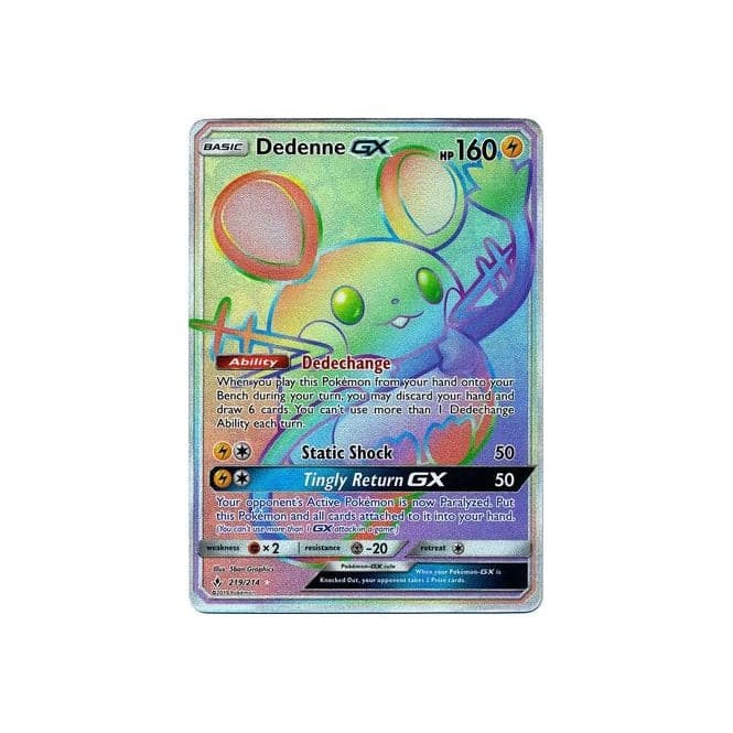 Dedenne GX 219/214 Full Art Rainbow Secret Rare Pokemon Card (Unbroken Bonds) Category: GX Kaarten