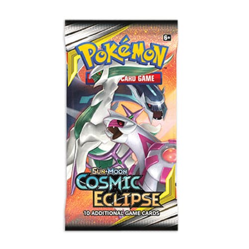 Pokémon TCG Sun & Moon Cosmic Eclipse biedt de ultieme verbinding tussen Pokémon en de sterren! Met deze uitbreidingsset versterk je de band tussen Pokémon en Trainers en bovendien biedt deze set ook nieuwe, krachtige TAG TEAM combinaties. Spring in de strijd met Charizard & Braixen-GX, Venusaur & Snivy-GX, Blastoise & Piplup-GX en Solgaleo & Lunala-GX, maar ook met het TAG TEAM van Arceus, Dialga en Palkia-GX! Cosmic Eclipse bevat in totaal meer dan 230 kaarten, waaronder 9 gloednieuwe TAG TEAM Pokémon-GX, 7 andere Pokémon-GX, TAG TEAM Supportkaarten, meer dan 20 Trainerkaarten en een nieuwe speciale Energiekaart. Een booster bevat 10 kaarten. Een boosterdisplay bestaat uit 36 boosters.
