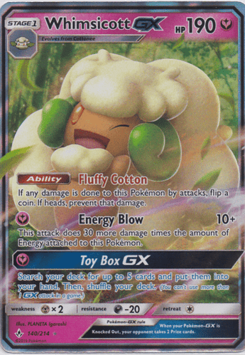 Whimsicott GX 140/214 Regular Art Pokemon Card (Sun & Moon Unbroken Bonds)