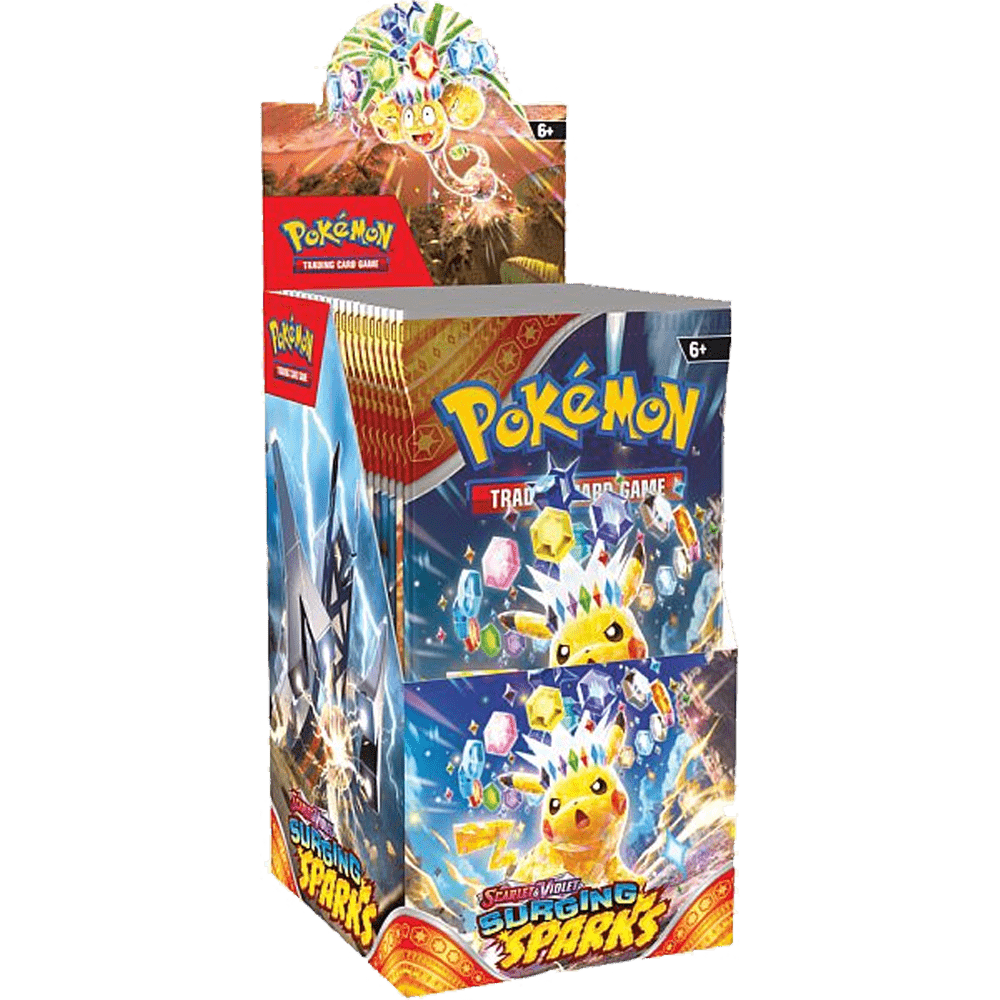 - Elke booster pack bevat 10 Surging Sparks Pokémon kaarten