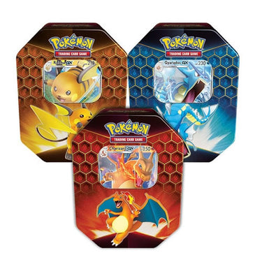 Das Pokemon TCG: Hidden Fates Tin Bundle enthält alle drei Tins: Charizard-GX, Gyarados-GX und Raichu-GX